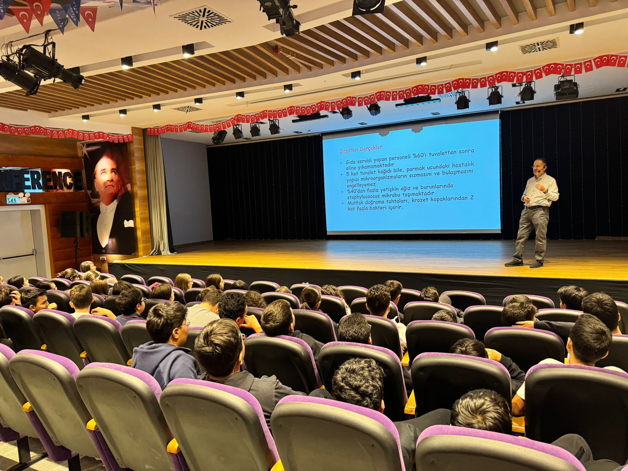 Platformumuzun sağlık komisyonu başkanı Op. Dr Hilmi ilhan ALTUĞ ve moleküler biyoloji ve genetik uzmanı diyetisyen Kübra Taze, Özel Bilfen Okulları öğrencilerine hijyen ve gıda sağlığı konusunda seminer sundular.